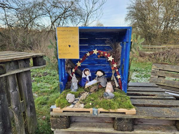 Am 29.11.25 um 15:00 Uhr wird der Krippenweg auf dem Gelände Hof Schmetkamp mit einer ökumenischen Andacht an der Wetterschutzhütte eröffnet.